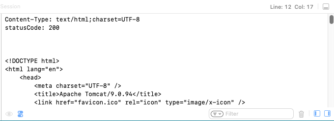 同一マシン上に tomcat が動作している場合は、Xcode のConsole に結果が表示される。 Webサーバに正しくアクセスできた場合は status code として 200 が返される。