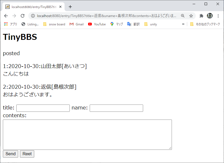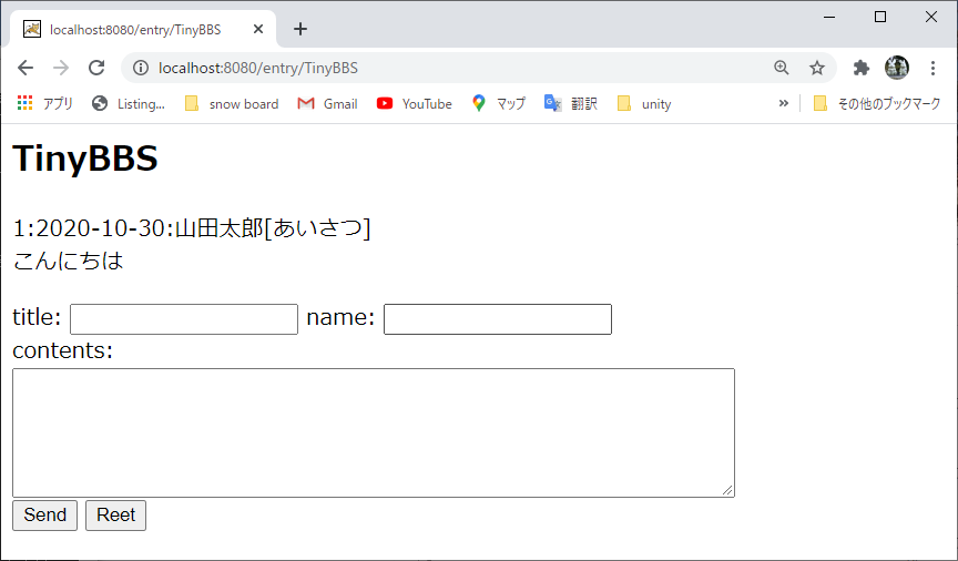 [ブラウザでアクセスするURL] http://localhost:8080/entry/TinyBBS