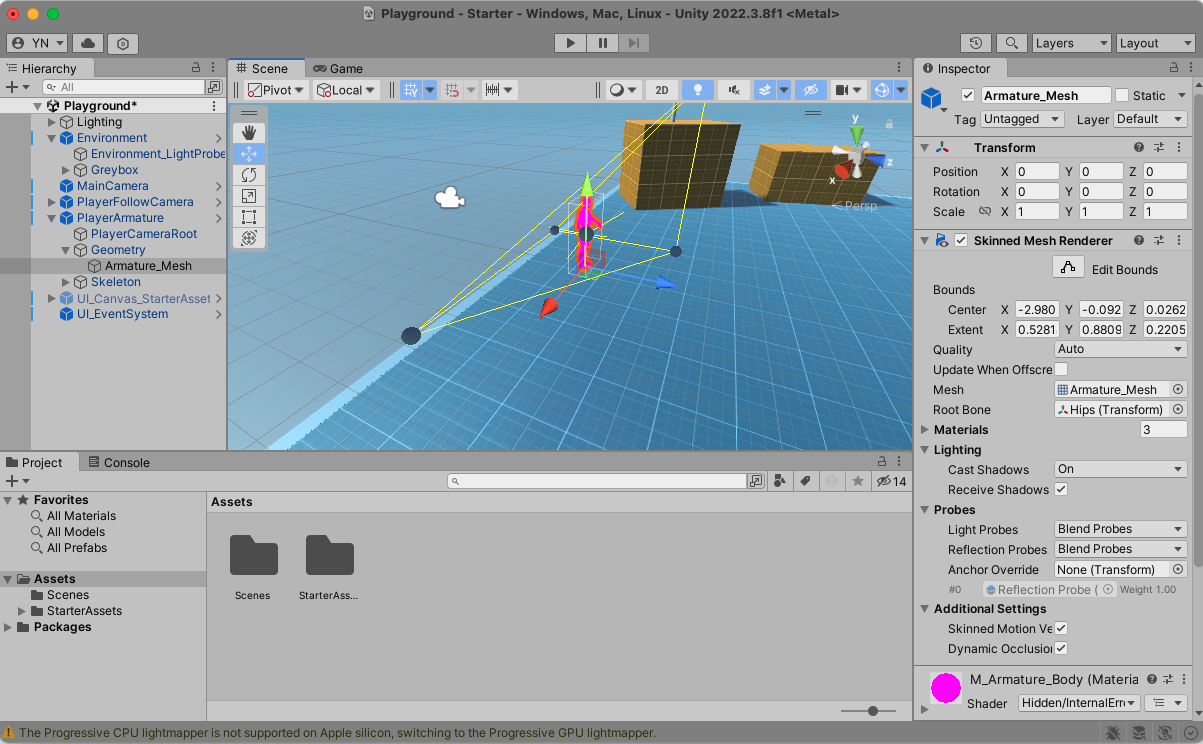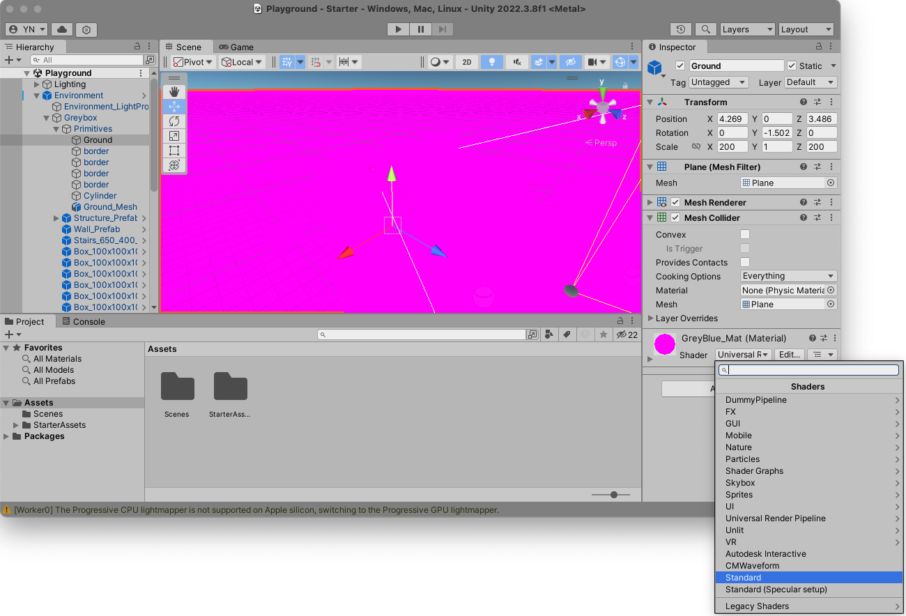 [注意] 2022.03.8f1 だと、Package のインストールの際にInstall/Upgradeを1度だけ指定した場合は、画面は正しく動作するが、キーボード入力を取らない。 2022.03.8f1 で、Package のインストールの際にInstall/Upgradeを2度指定した場合は、そもそも Material の Shader を Standard に変更するときに Unity が異常終了するので使えない。