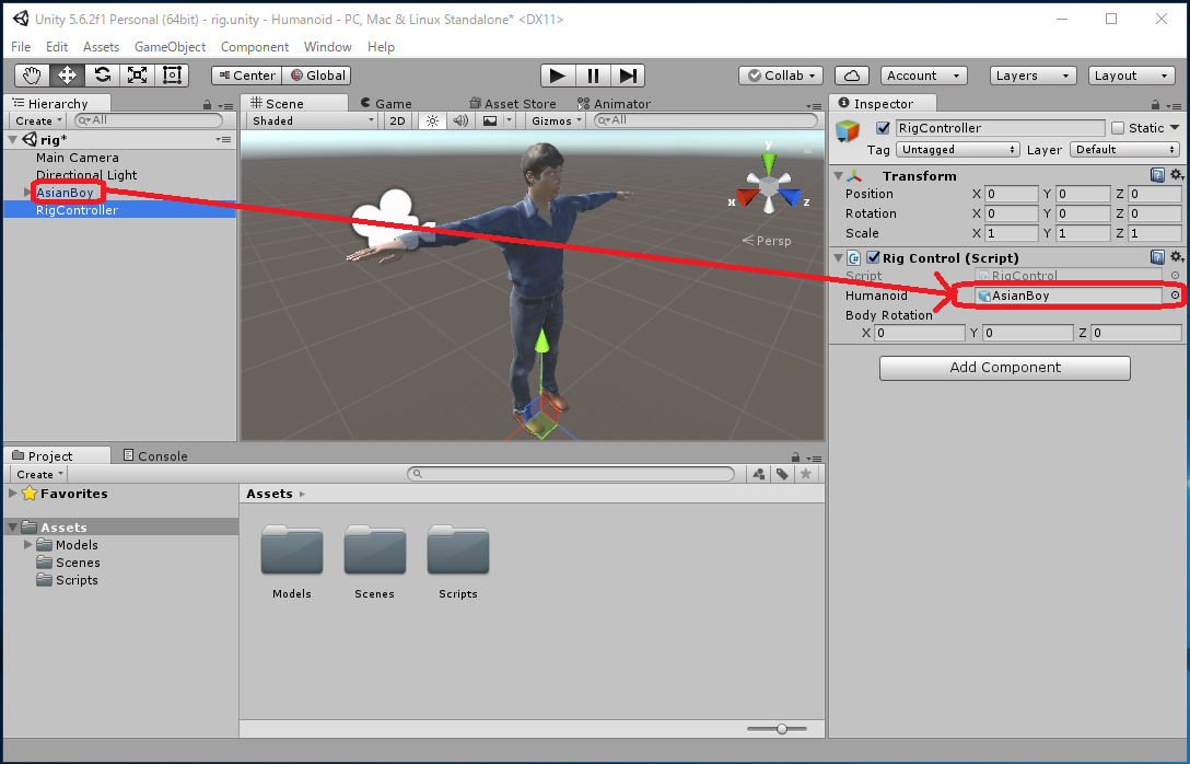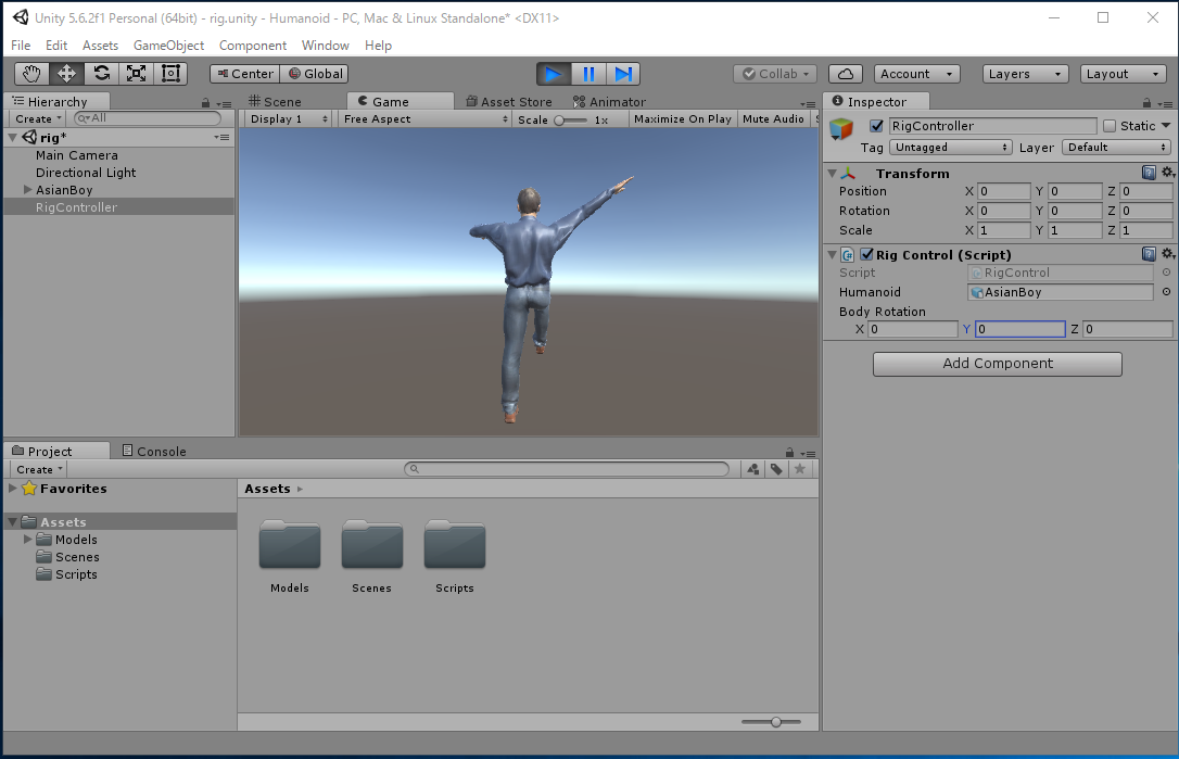 ここで説明した Unity のプロジェクトファイルはこちら Humanoid.zip。