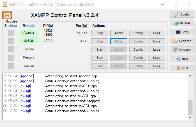 コマンドプロンプト上で mysql コマンドを用いて、作業を行う。